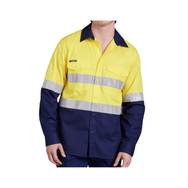 King Gee – Mens Hi Vis Work Cool 2 Reflective Shirt – Yellow/Navy