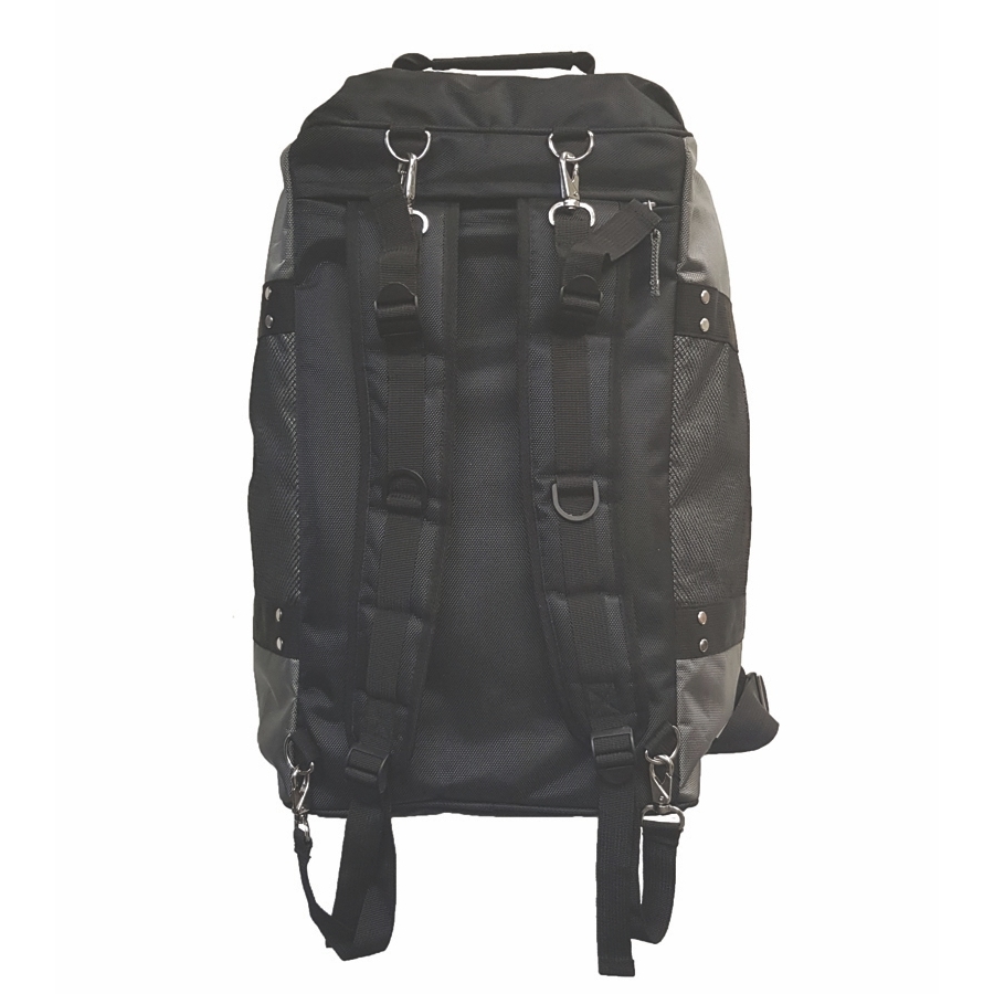 Multiple side zip compartments are perfect for stowing boots, dirty clothes and other gear, and optional padded backpack straps that can be adjusted or removed to suit.